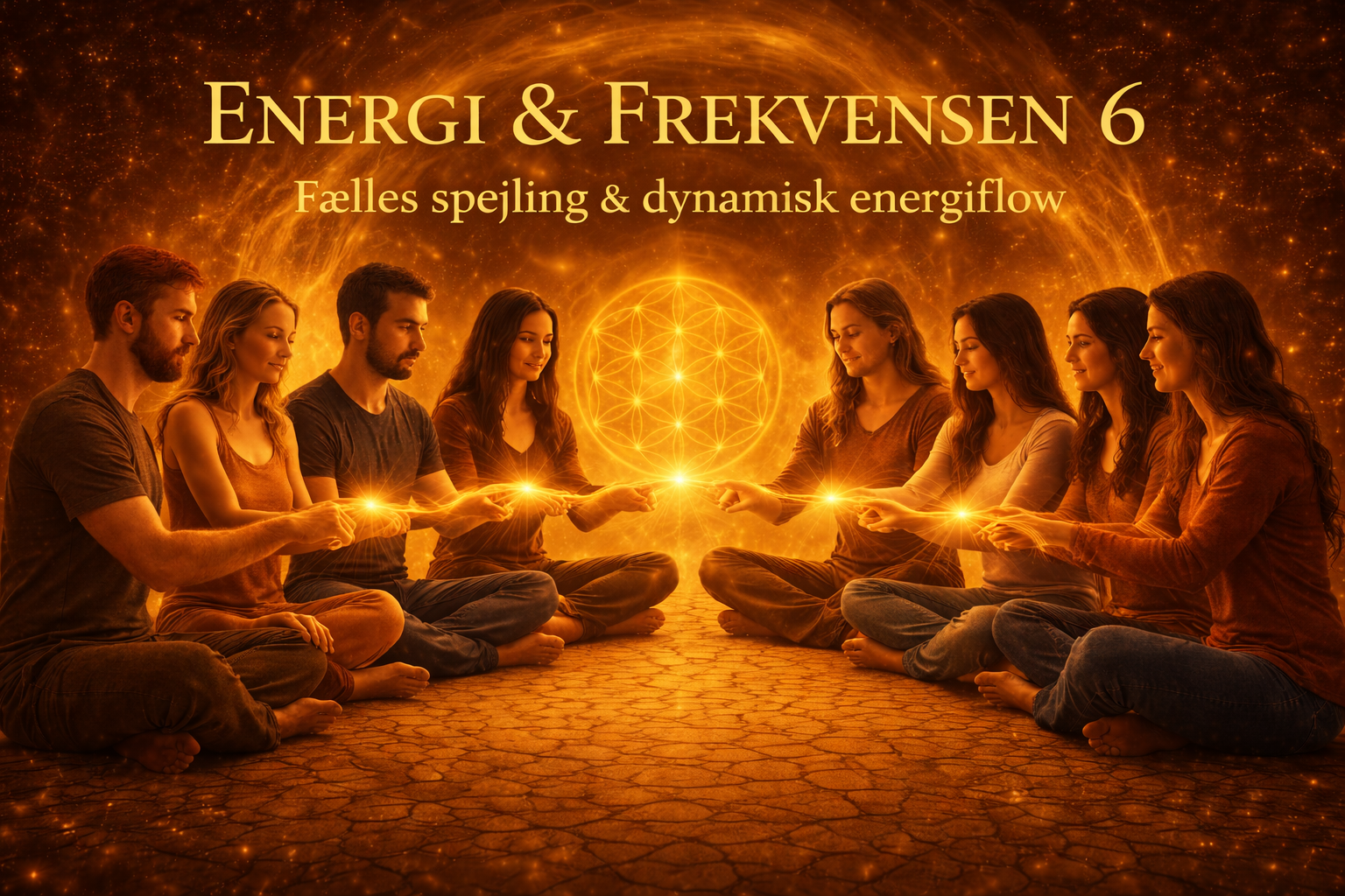 I Energi i frekvensen 6 samles vi i åben cirkel og skaber et trygt, nærværende rum. Deltagere kan lægge en genstand foran sig som tegn på samtykke til at blive sanset. De, der åbner sig, modtager delinger fra gruppen og oplever, hvordan det føles at blive spejlet af flere på én gang.